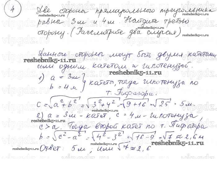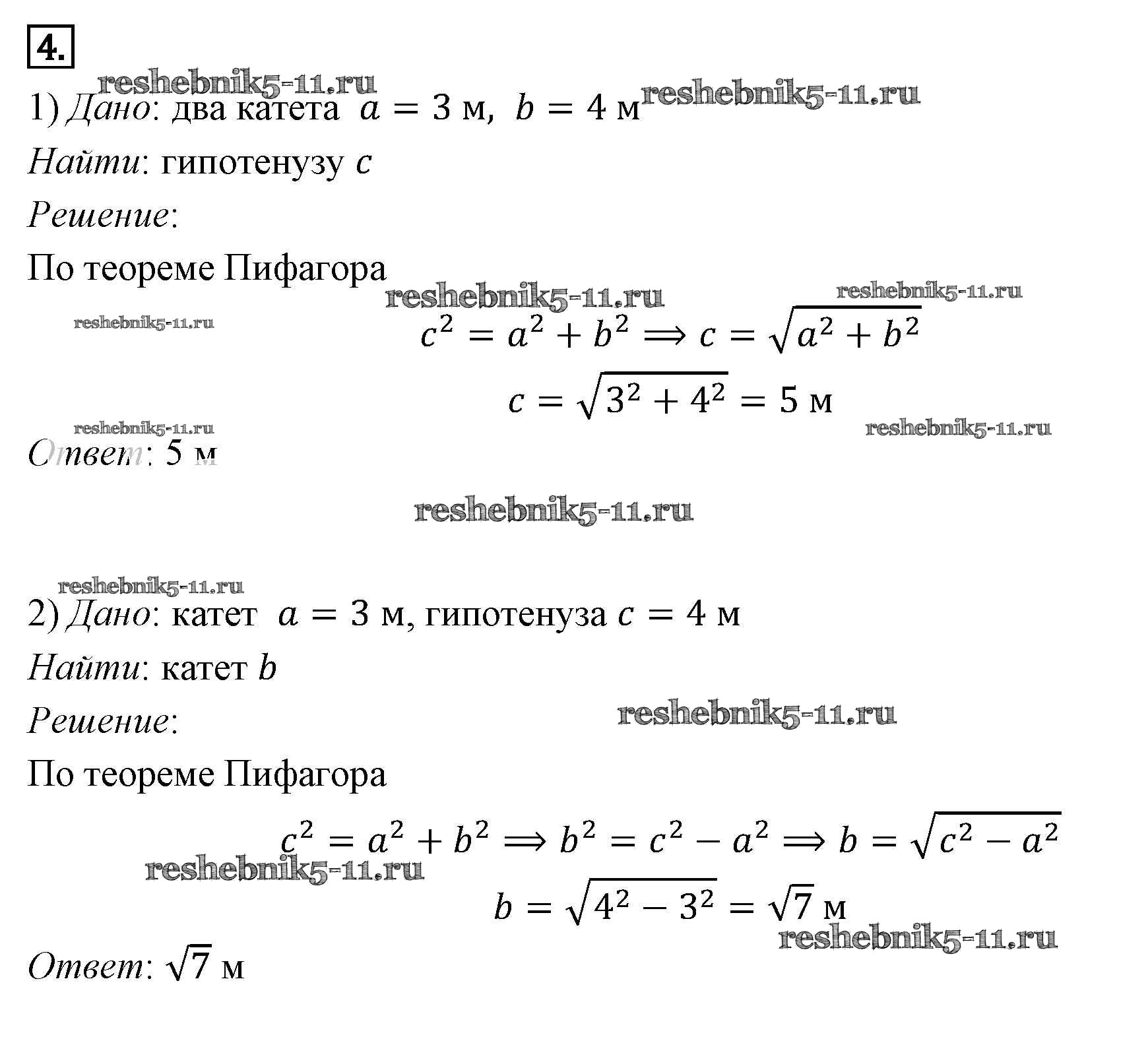 Готовая домашняя работа с ответами по Геометрии за 7, 8, 9 класс Погорелов Учебник Просвещение 2014 ФГОС - §7. Теорема Пифагора 4