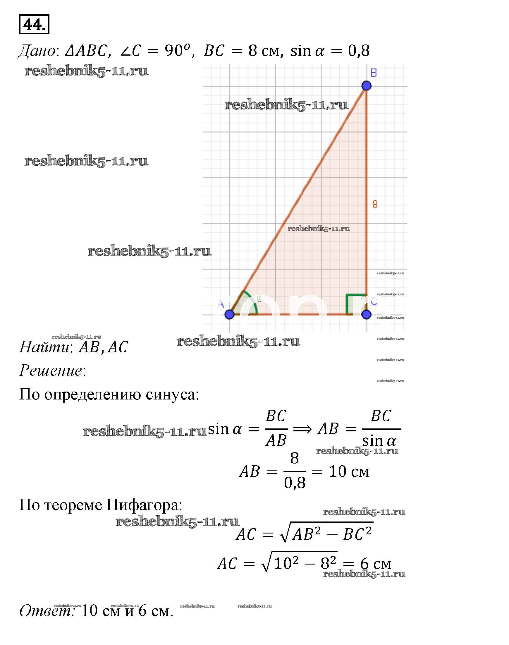 Готовая домашняя работа с ответами по Геометрии за 7, 8, 9 класс Погорелов Учебник Просвещение 2014 ФГОС - §7. Теорема Пифагора 44