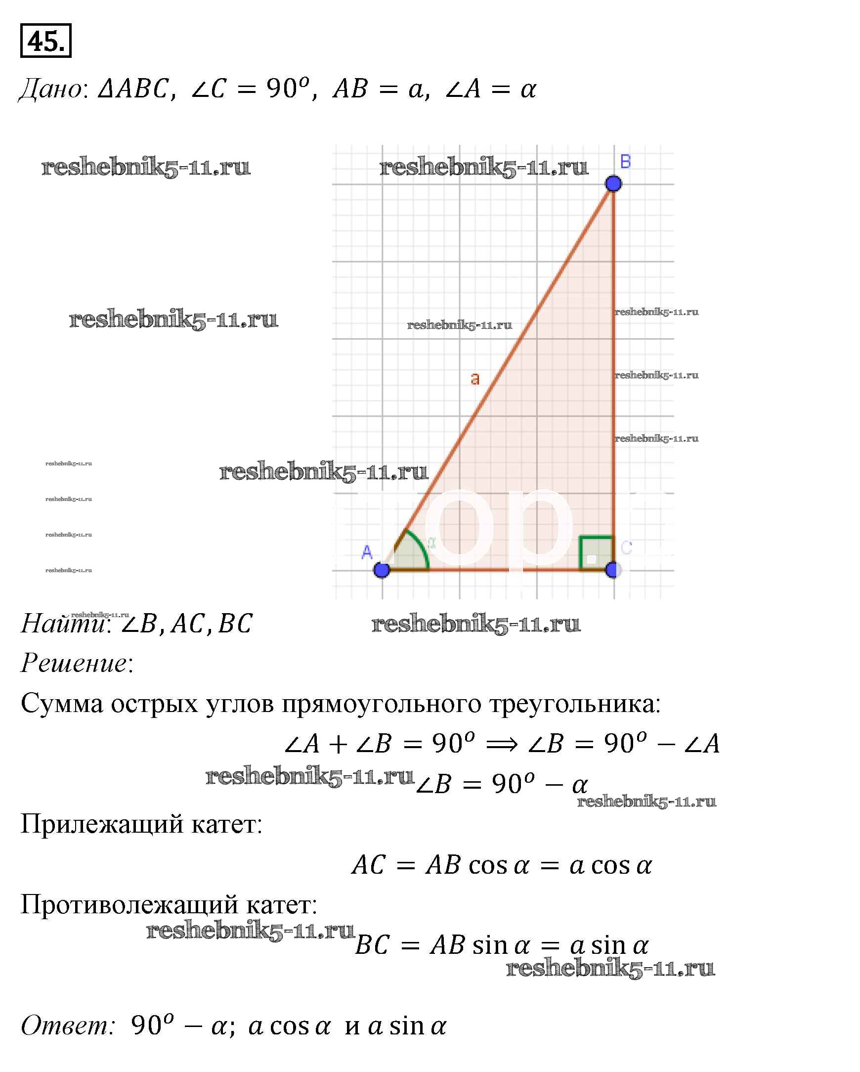Готовая домашняя работа с ответами по Геометрии за 7, 8, 9 класс Погорелов Учебник Просвещение 2014 ФГОС - §7. Теорема Пифагора 45