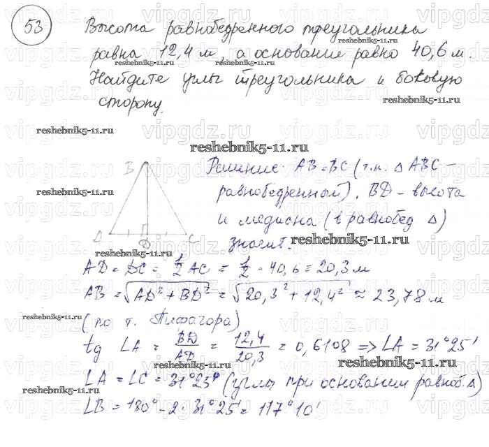 Готовая домашняя работа с ответами по Геометрии за 7, 8, 9 класс Погорелов Учебник Просвещение 2014 ФГОС - §7. Теорема Пифагора 53