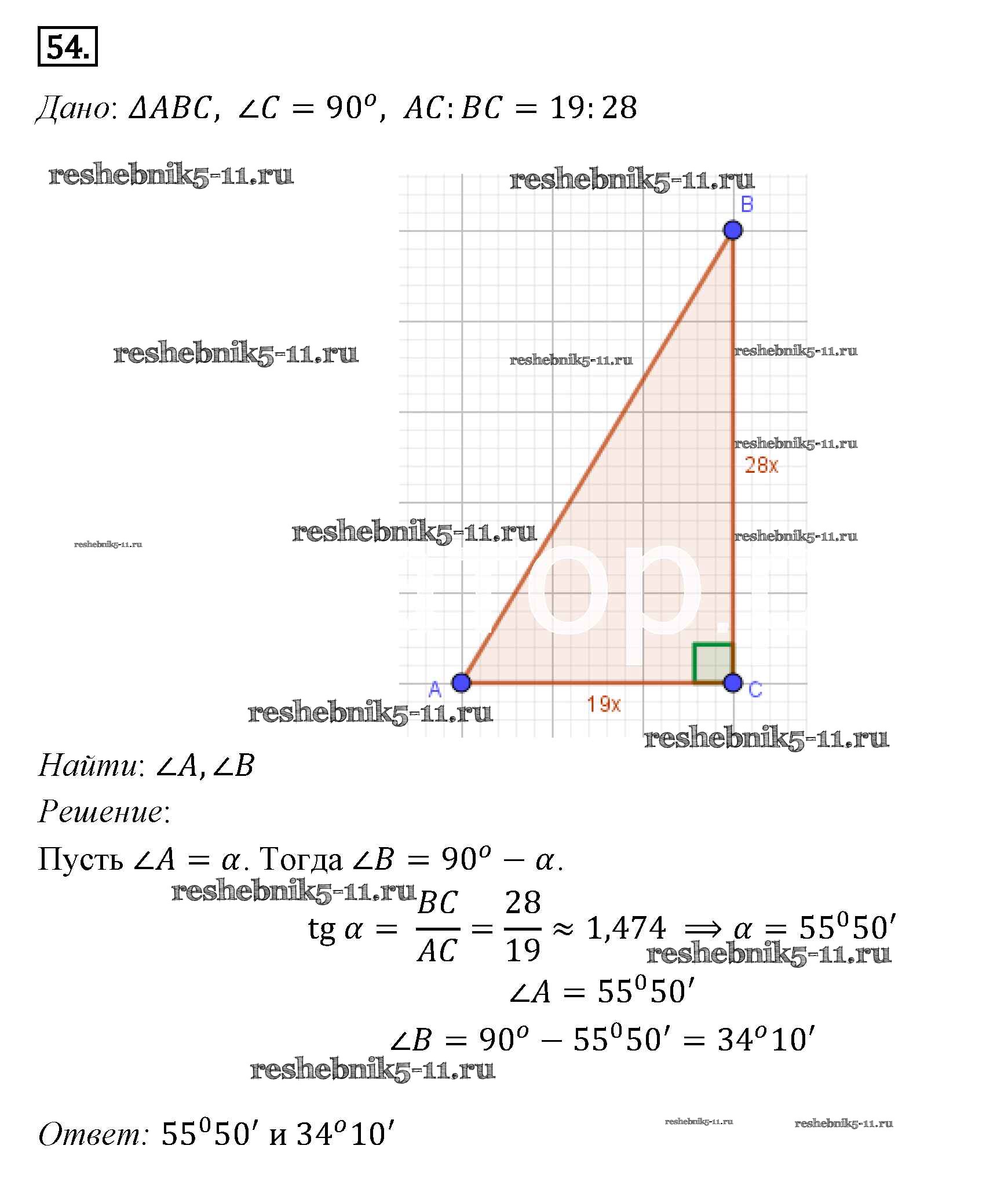 Готовая домашняя работа с ответами по Геометрии за 7, 8, 9 класс Погорелов Учебник Просвещение 2014 ФГОС - §7. Теорема Пифагора 54