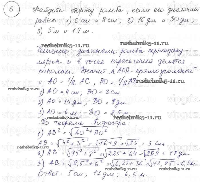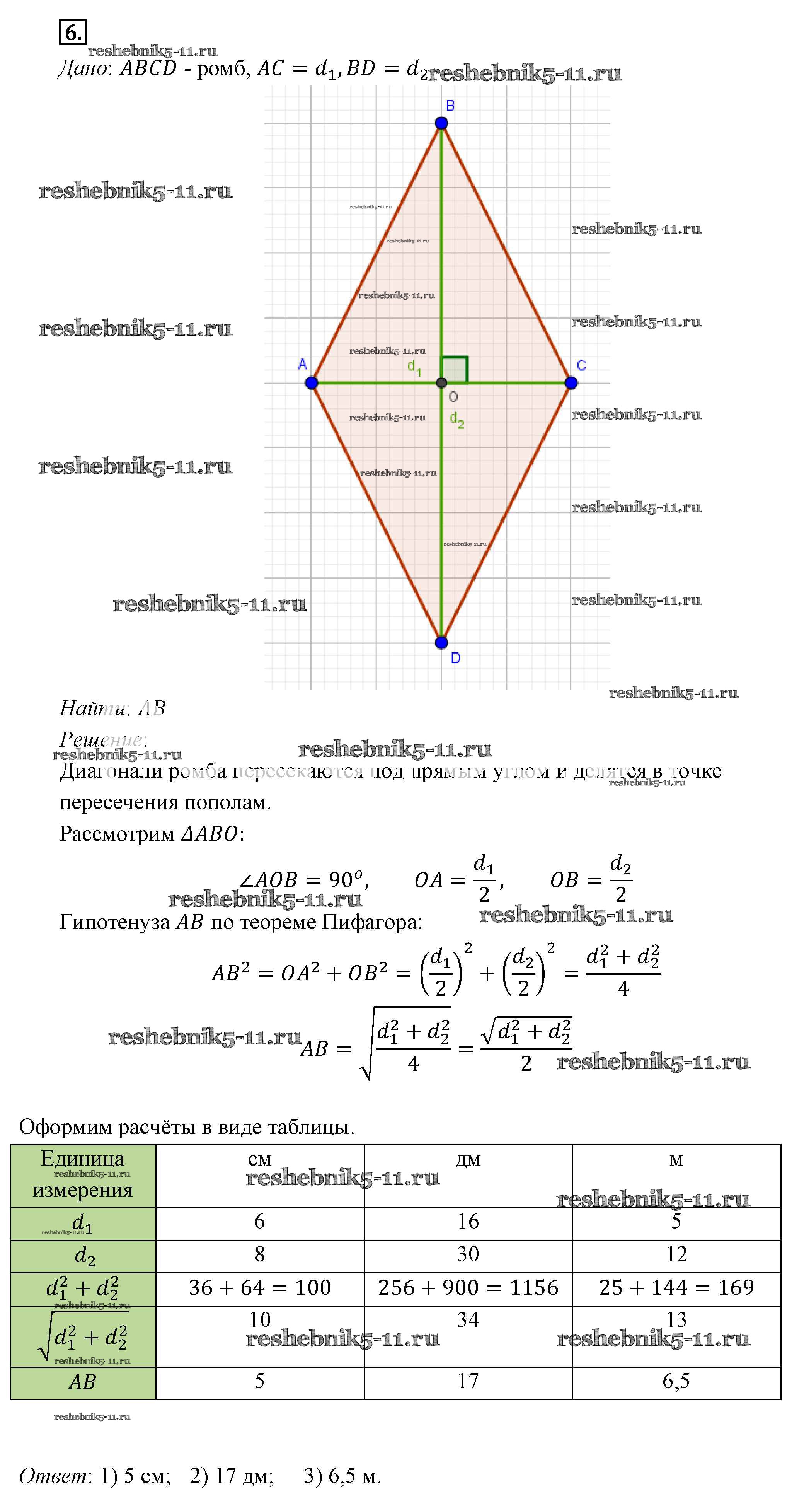 Готовая домашняя работа с ответами по Геометрии за 7, 8, 9 класс Погорелов Учебник Просвещение 2014 ФГОС - §7. Теорема Пифагора 6
