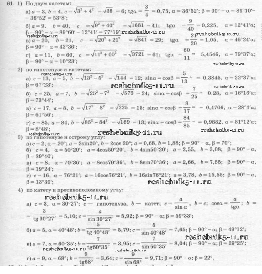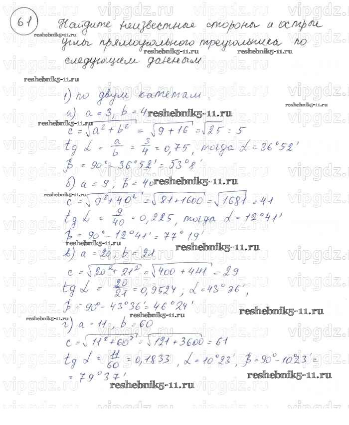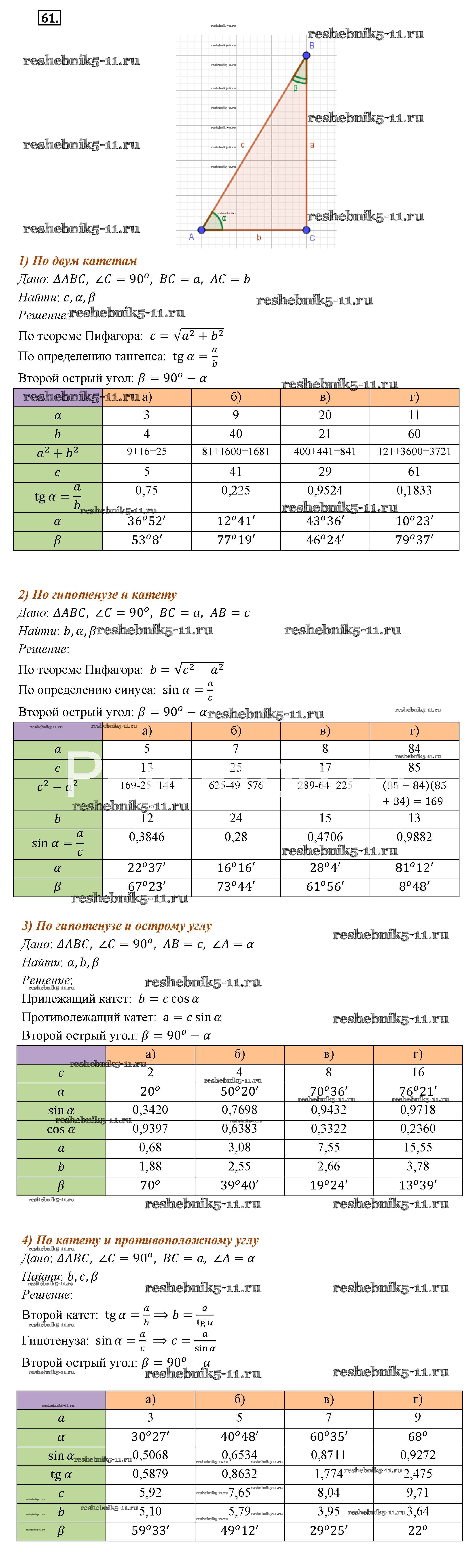 Готовая домашняя работа с ответами по Геометрии за 7, 8, 9 класс Погорелов Учебник Просвещение 2014 ФГОС - §7. Теорема Пифагора 61