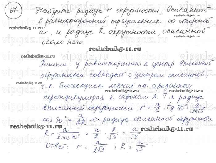 Готовая домашняя работа с ответами по Геометрии за 7, 8, 9 класс Погорелов Учебник Просвещение 2014 ФГОС - §7. Теорема Пифагора 67