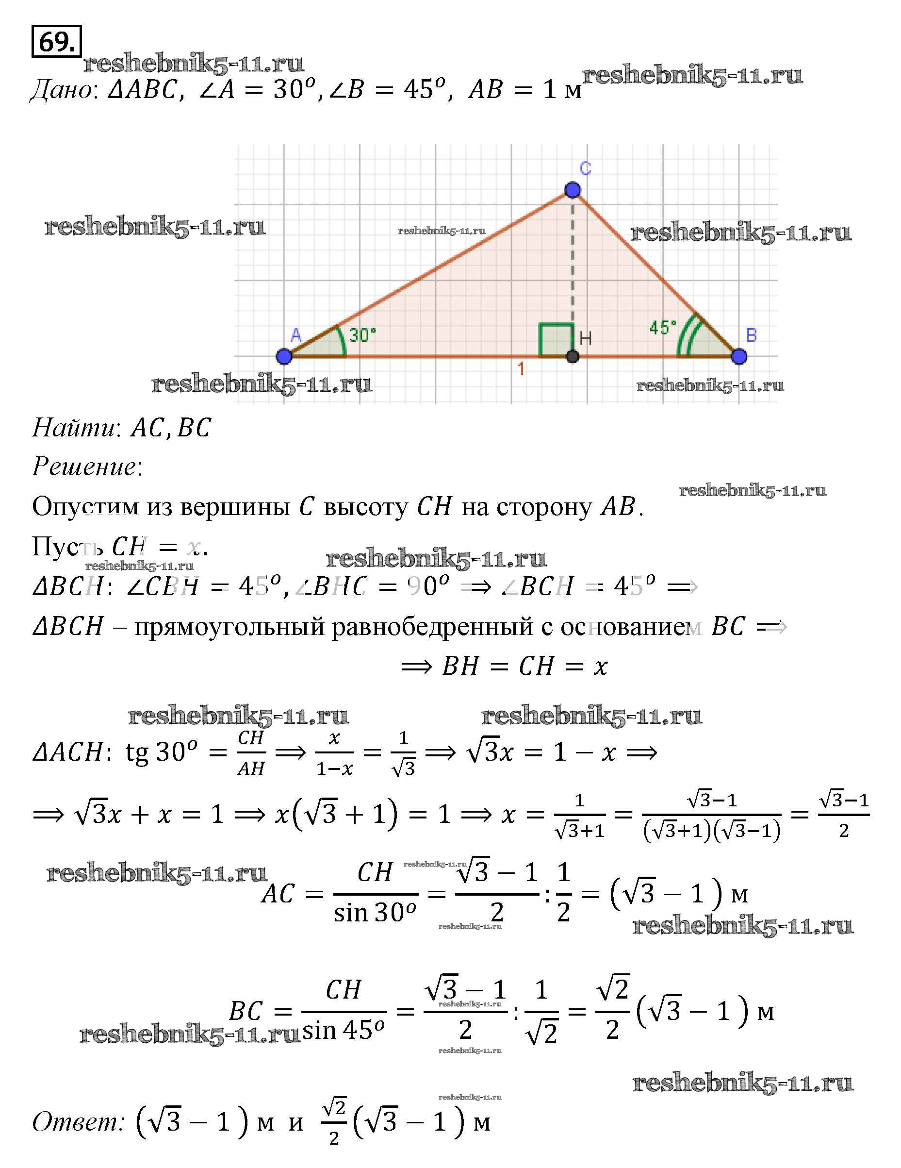 Готовая домашняя работа с ответами по Геометрии за 7, 8, 9 класс Погорелов Учебник Просвещение 2014 ФГОС - §7. Теорема Пифагора 69
