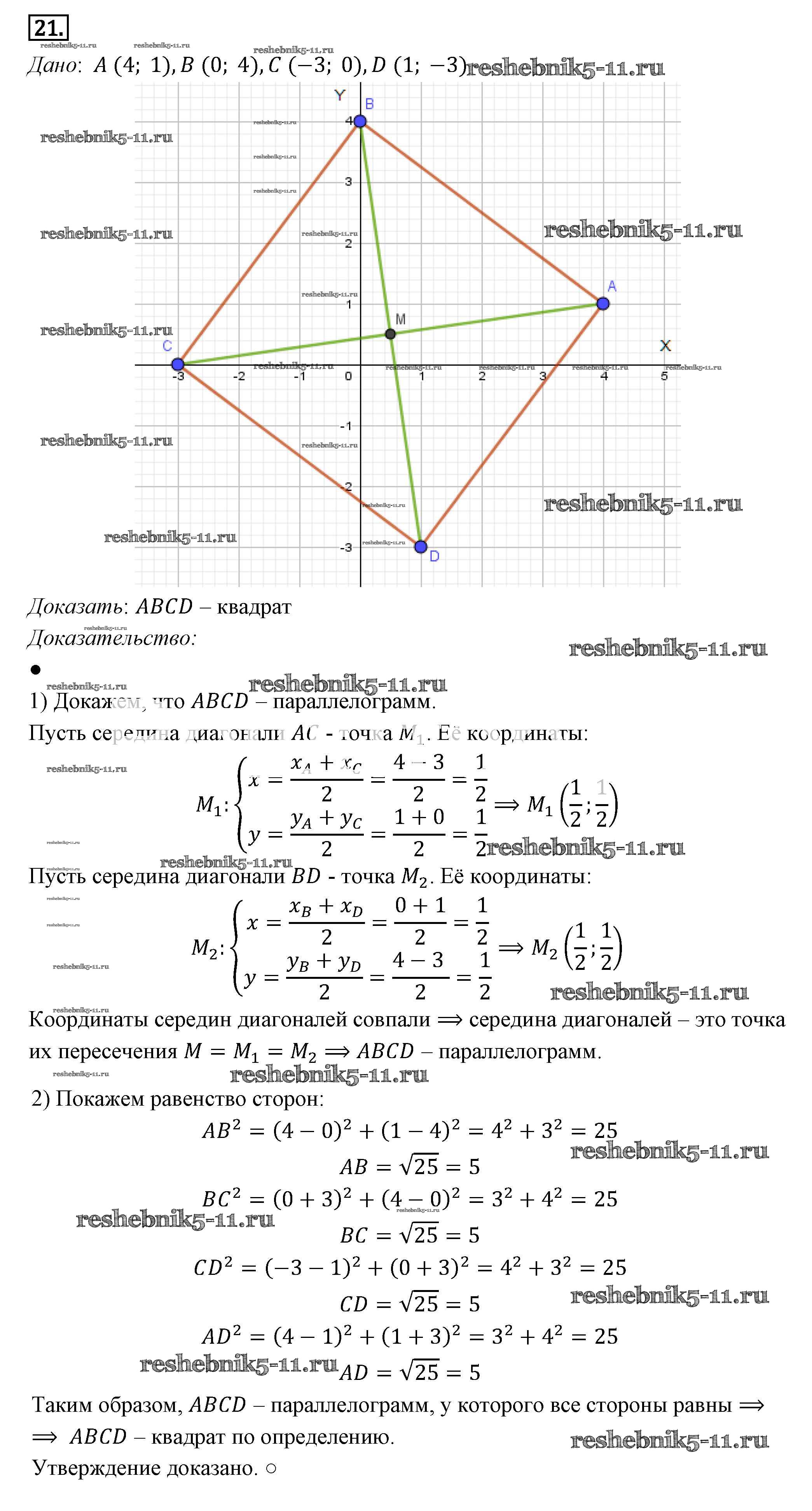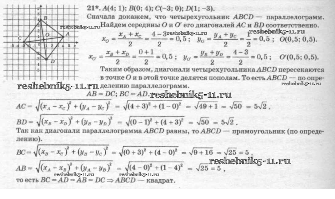 Готовая домашняя работа с ответами по Геометрии за 7, 8, 9 класс Погорелов Учебник Просвещение 2014 ФГОС - §8. Декартовы координаты на плоскости 21