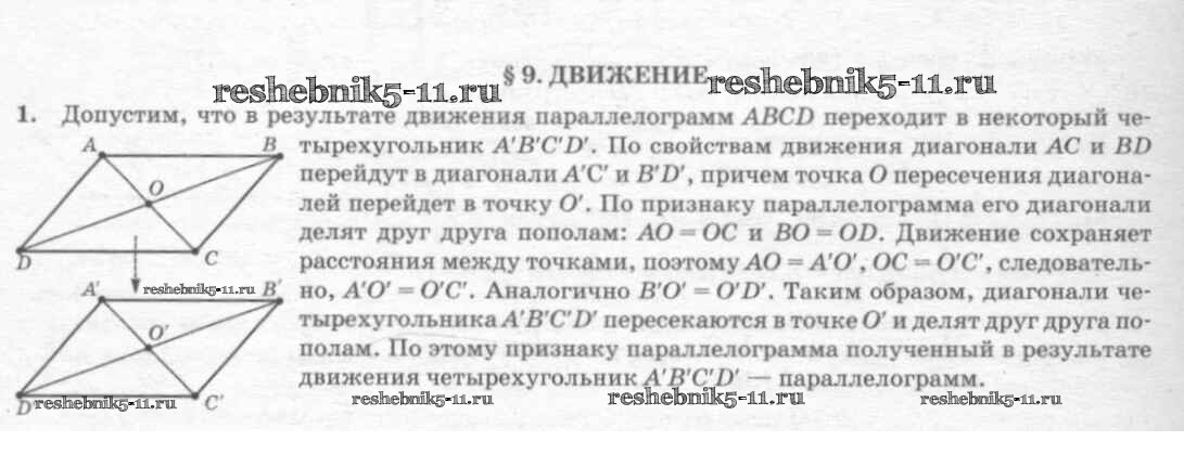 Готовая домашняя работа с ответами по Геометрии за 7, 8, 9 класс Погорелов Учебник Просвещение 2014 ФГОС - §9. Движение 1
