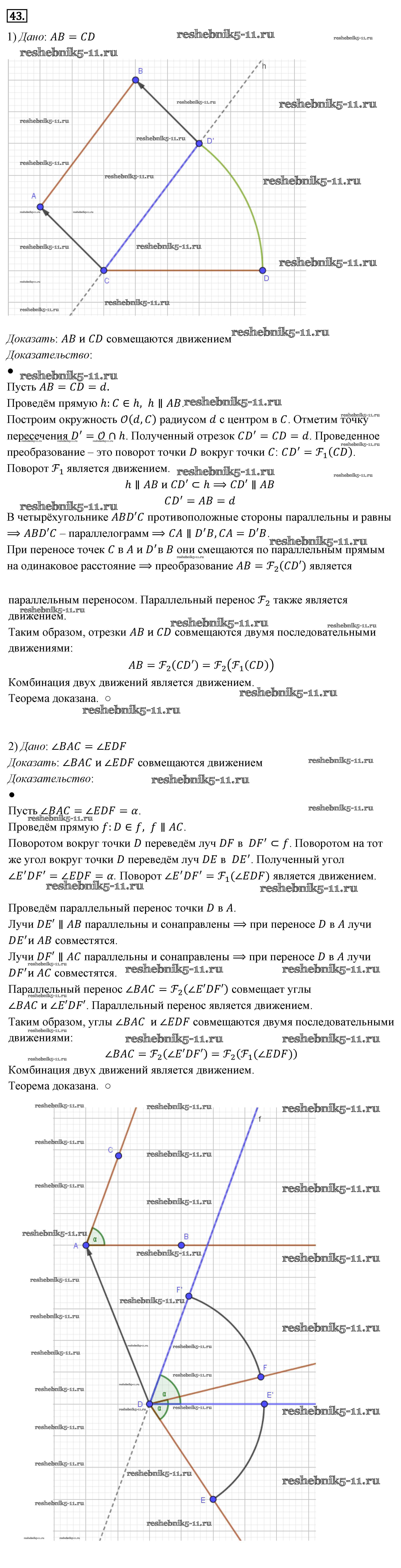 Готовая домашняя работа с ответами по Геометрии за 7, 8, 9 класс Погорелов Учебник Просвещение 2014 ФГОС - §9. Движение 43