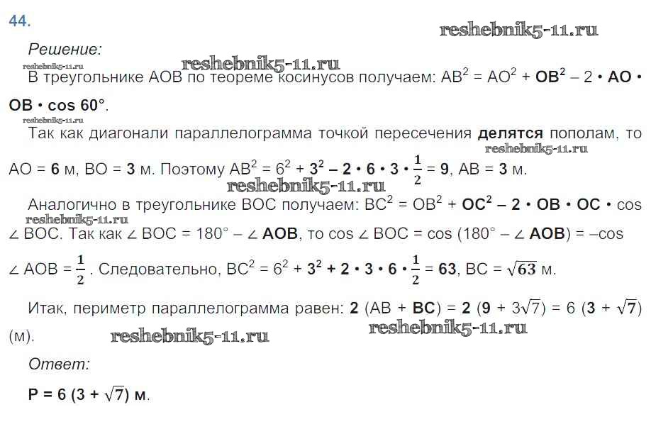 Готовая домашняя работа с ответами по Геометрии за 9 класс Атанасян, Бутузов, Глазков, Юдина Рабочая тетрадь Просвещение 2014 ФГОС - Задачи 44