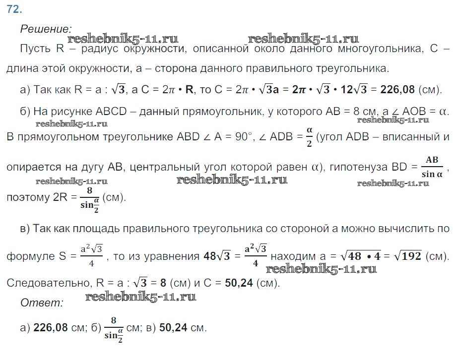 Готовая домашняя работа с ответами по Геометрии за 9 класс Атанасян, Бутузов, Глазков, Юдина Рабочая тетрадь Просвещение 2014 ФГОС - Задачи 72