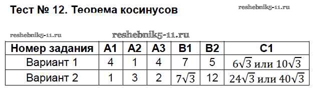 Готовая домашняя работа с ответами по Геометрии за 9 класс Рурукин Контрольно-измерительные материалы (КИМ) ВАКО 2016 ФГОС - Тесты 12