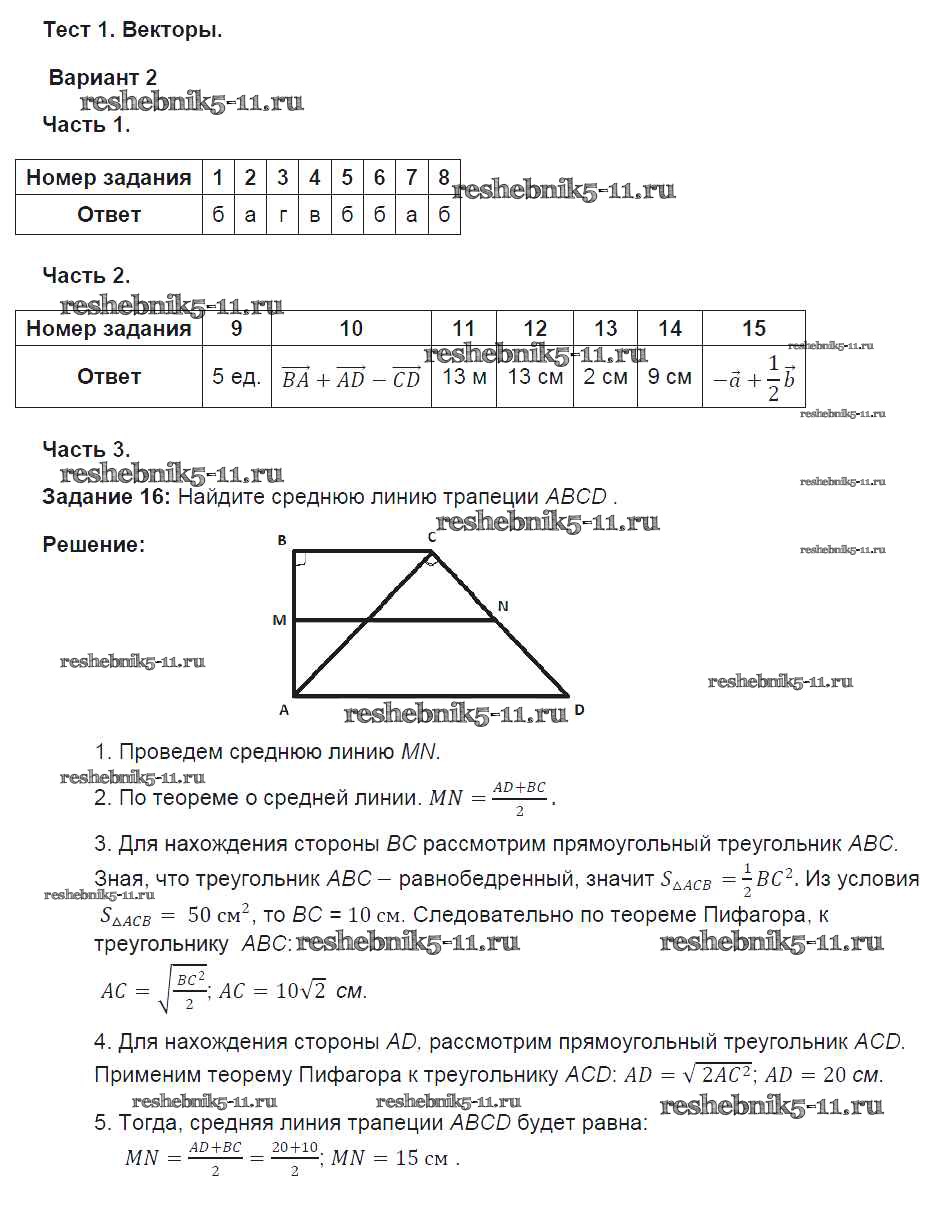 Готовая домашняя работа с ответами по Геометрии за 9 класс Фарков Тесты УМК Экзамен 2016 ФГОС - Тема 1. Варианты 2
