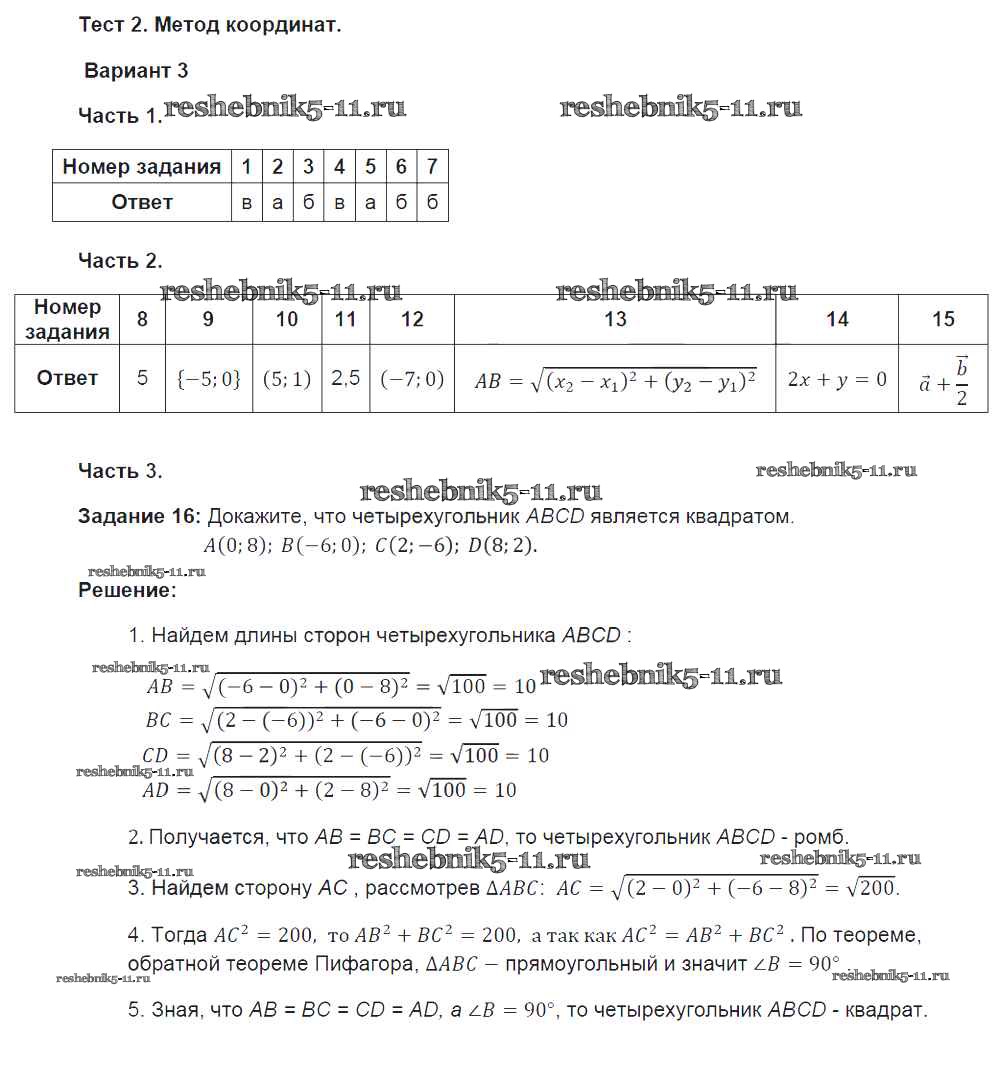 Готовая домашняя работа с ответами по Геометрии за 9 класс Фарков Тесты УМК Экзамен 2016 ФГОС - Тема 2. Варианты 3