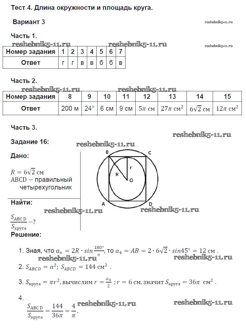 Готовая домашняя работа с ответами по Геометрии за 9 класс Фарков Тесты УМК Экзамен 2016 ФГОС - Тема 4. Варианты 3