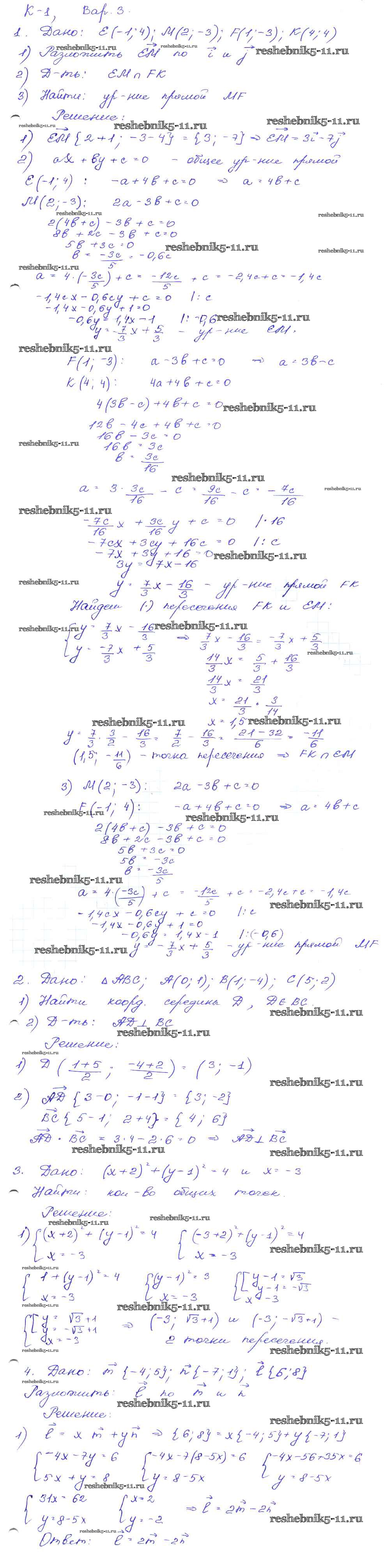 Готовая домашняя работа с ответами по Геометрии за 9 класс Зив Дидактические материалы Просвещение 2016 ФГОС - КР-1. Варианты 3