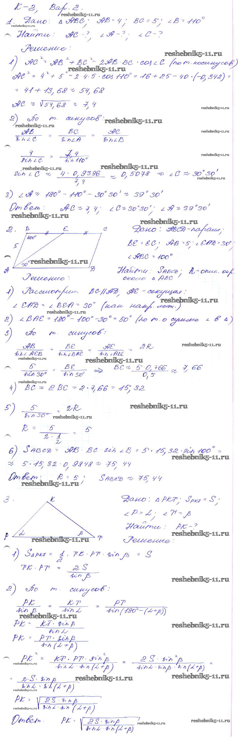Готовая домашняя работа с ответами по Геометрии за 9 класс Зив Дидактические материалы Просвещение 2016 ФГОС - КР-2. Варианты 2
