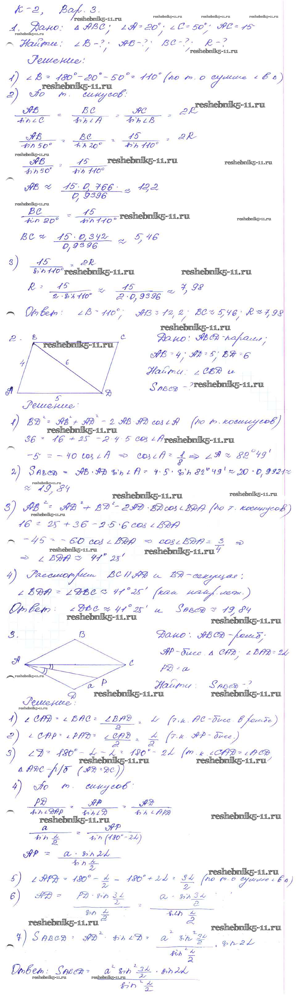 Готовая домашняя работа с ответами по Геометрии за 9 класс Зив Дидактические материалы Просвещение 2016 ФГОС - КР-2. Варианты 3