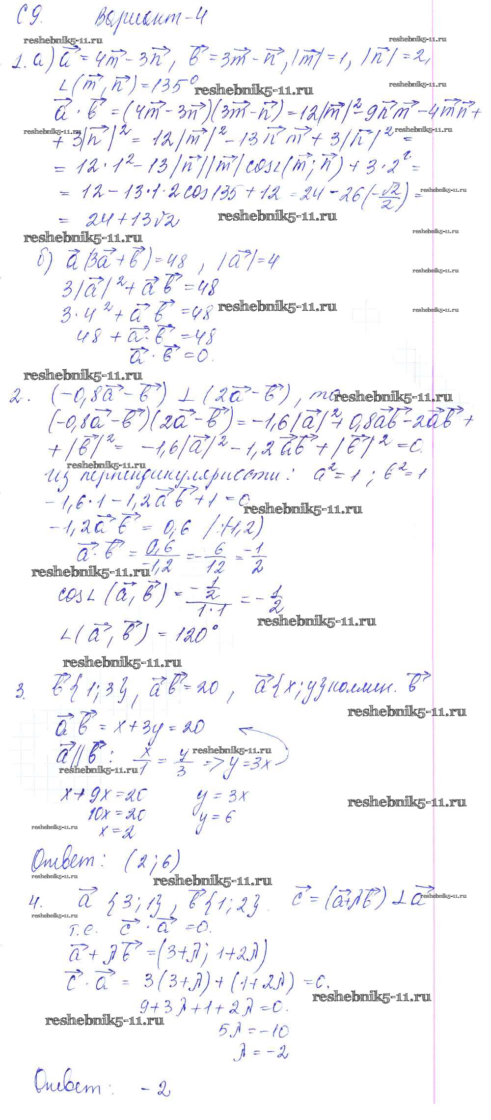 Решебник / самостоятельные работы / к учебнику Атанасяна / ср-9. вариант / 4