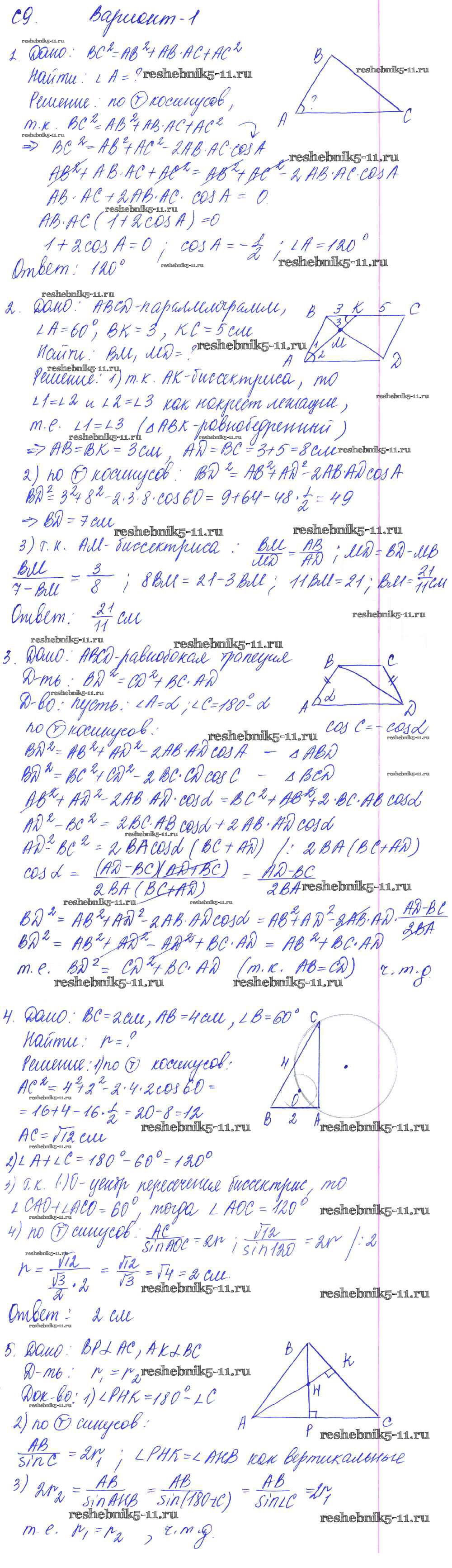 Решебник / самостоятельные работы / к учебнику Погорелова / ср-9. вариант / 1