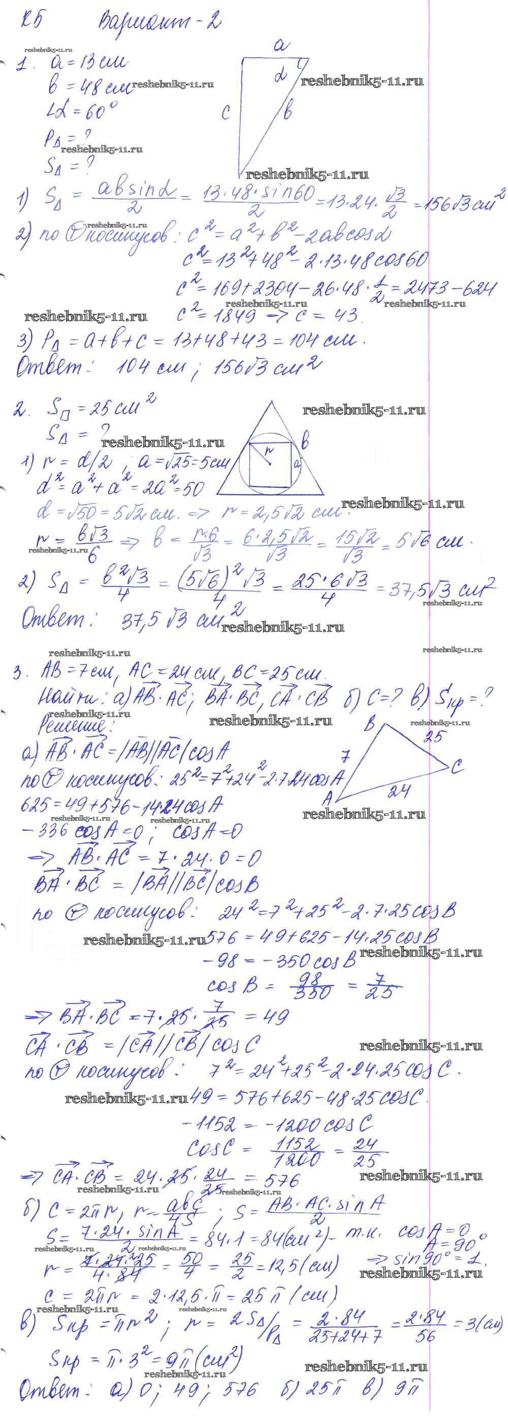 Готовая домашняя работа с ответами по Геометрии за 9 класс Журавлев, Малышева, Свентковский Контрольные и самостоятельные работы УМК Экзамен 2016 ФГОС - КР-5. Варианты 2