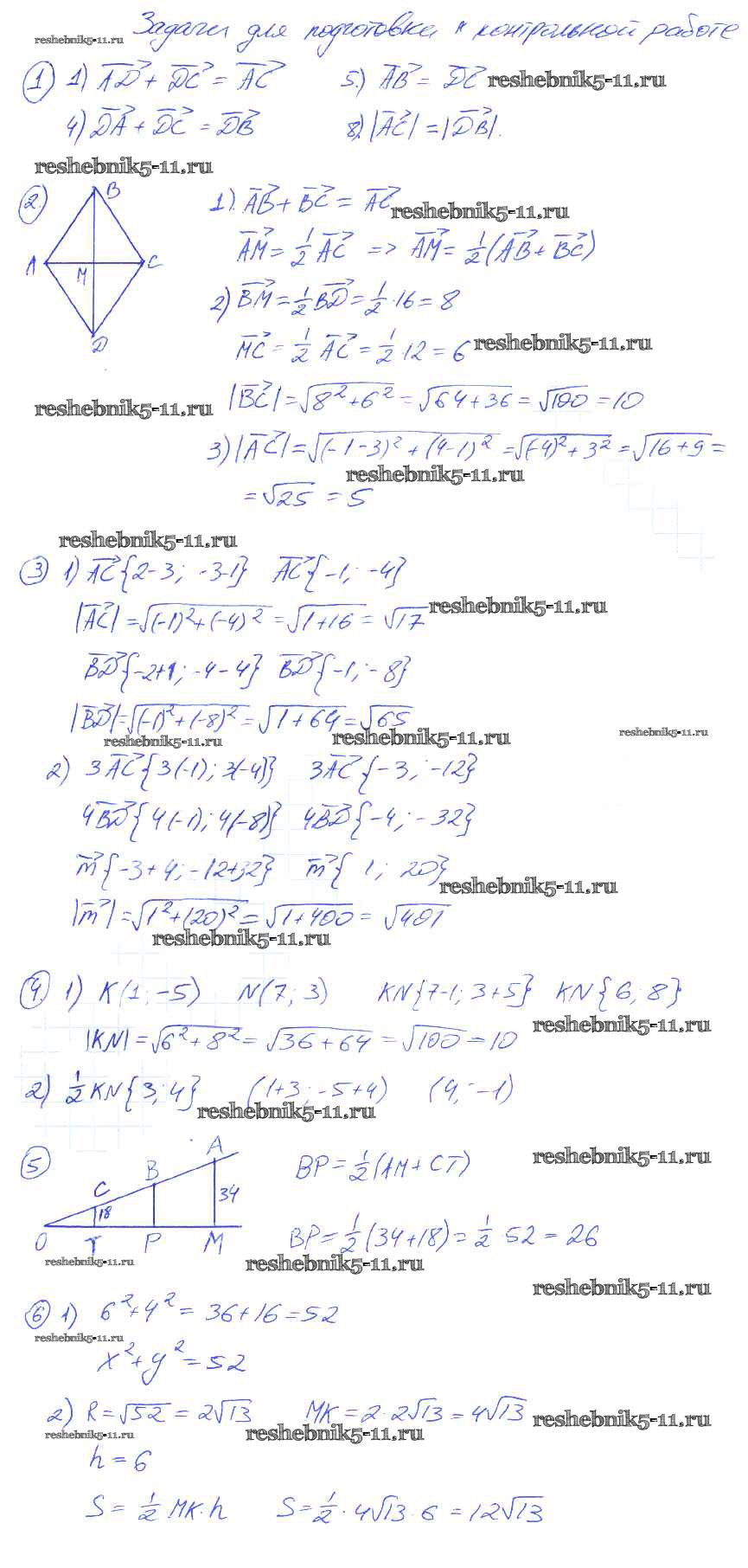 Готовая домашняя работа с ответами по Геометрии за 9 класс Мельникова Контрольные работы УМК Экзамен 2016 ФГОС - КР-1. Варианты 1