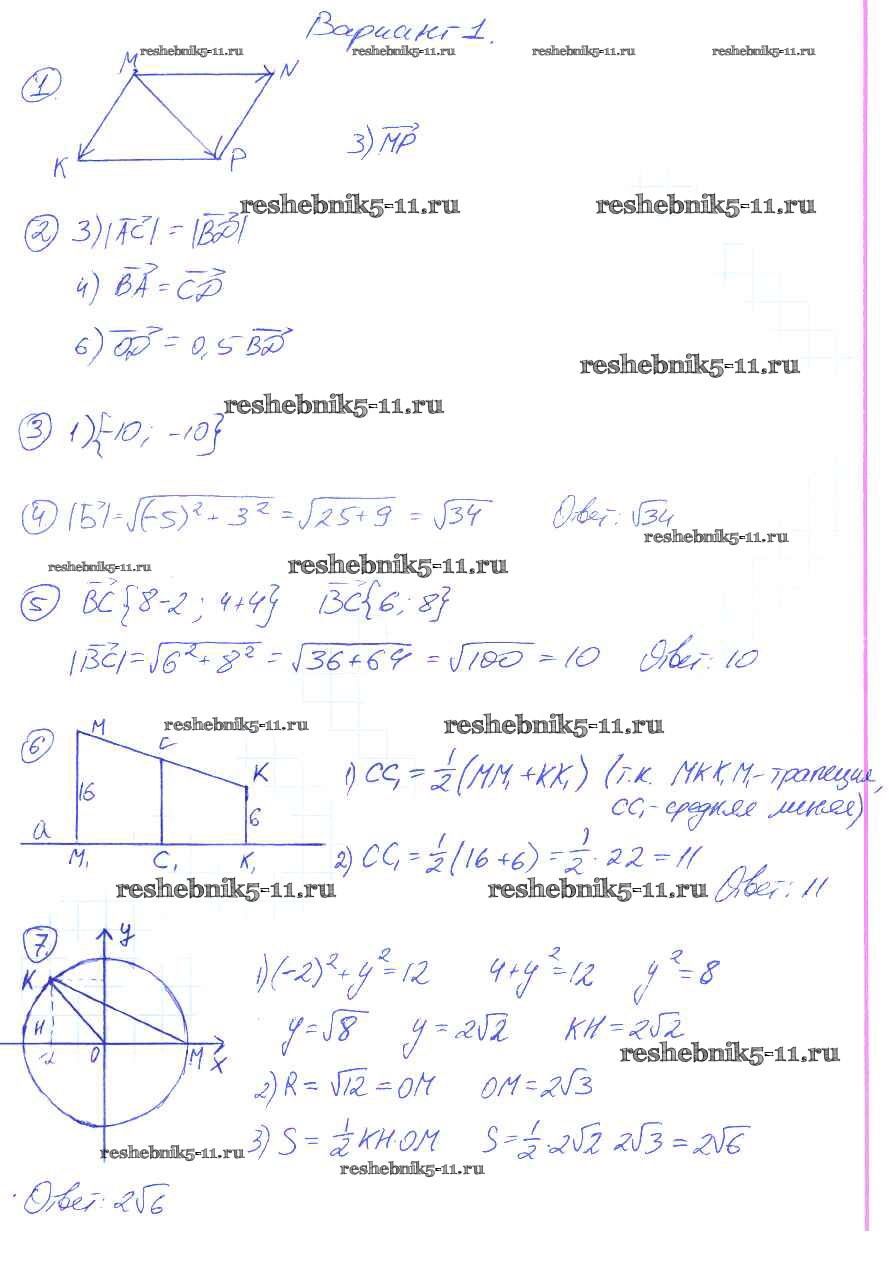 Готовая домашняя работа с ответами по Геометрии за 9 класс Мельникова Контрольные работы УМК Экзамен 2016 ФГОС - КР-1. Варианты 2