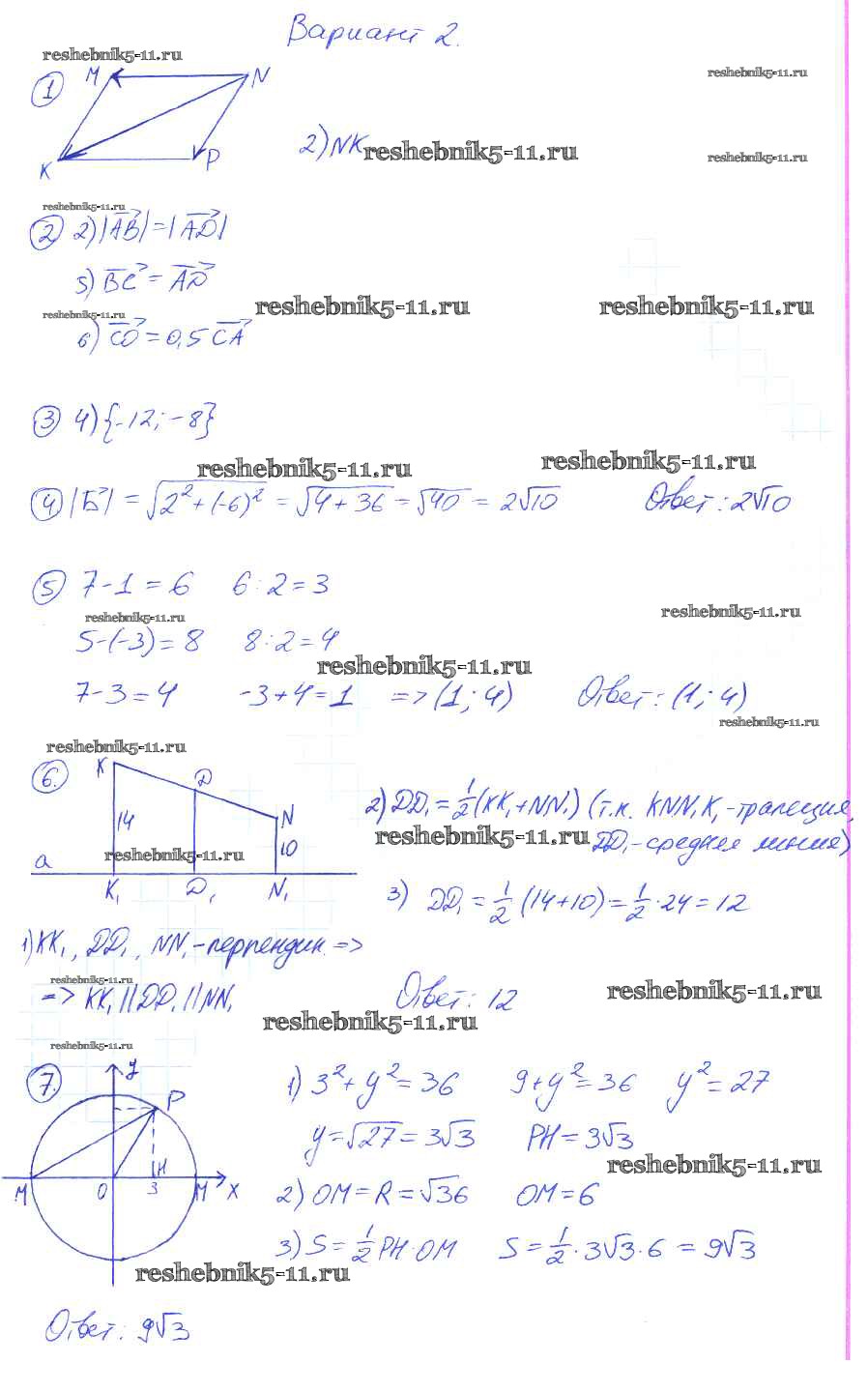 Готовая домашняя работа с ответами по Геометрии за 9 класс Мельникова Контрольные работы УМК Экзамен 2016 ФГОС - КР-1. Варианты 3