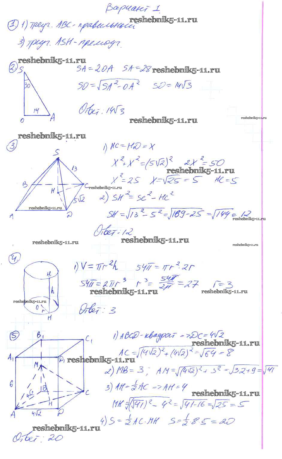 Готовая домашняя работа с ответами по Геометрии за 9 класс Мельникова Контрольные работы УМК Экзамен 2016 ФГОС - КР-5. Варианты 2