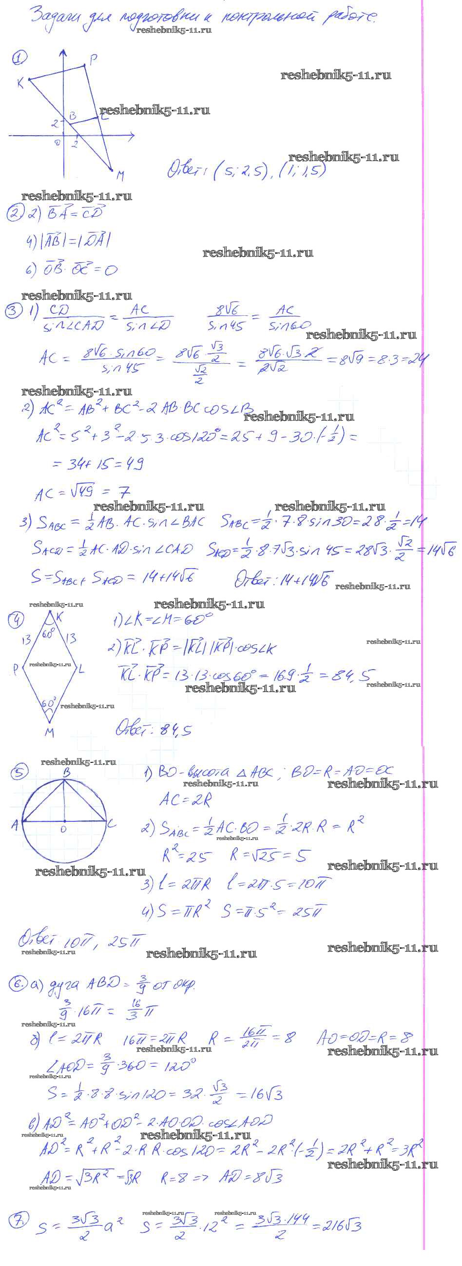 Готовая домашняя работа с ответами по Геометрии за 9 класс Мельникова Контрольные работы УМК Экзамен 2016 ФГОС - КР-6. Варианты 1