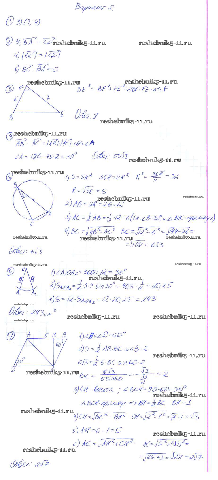 Готовая домашняя работа с ответами по Геометрии за 9 класс Мельникова Контрольные работы УМК Экзамен 2016 ФГОС - КР-6. Варианты 3