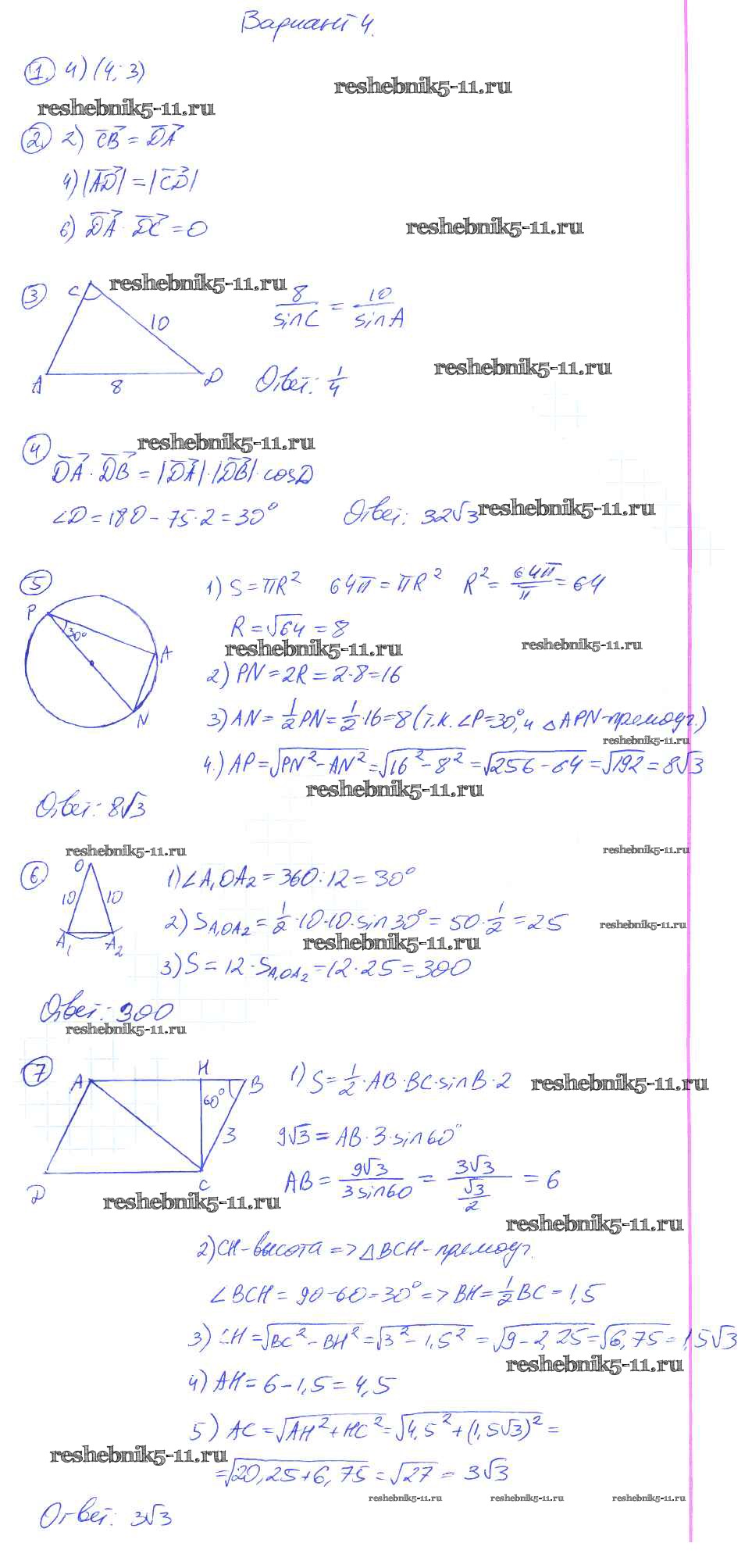 Готовая домашняя работа с ответами по Геометрии за 9 класс Мельникова Контрольные работы УМК Экзамен 2016 ФГОС - КР-6. Варианты 5