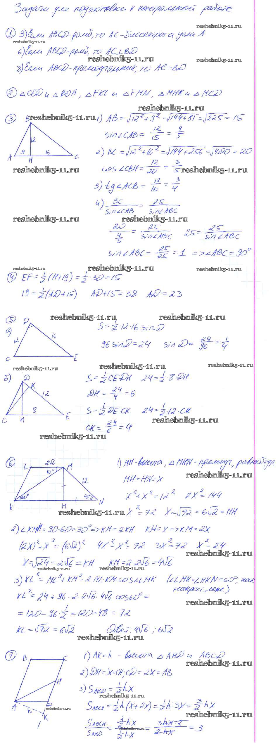 Готовая домашняя работа с ответами по Геометрии за 9 класс Мельникова Контрольные работы УМК Экзамен 2016 ФГОС - КР-7. Варианты 1