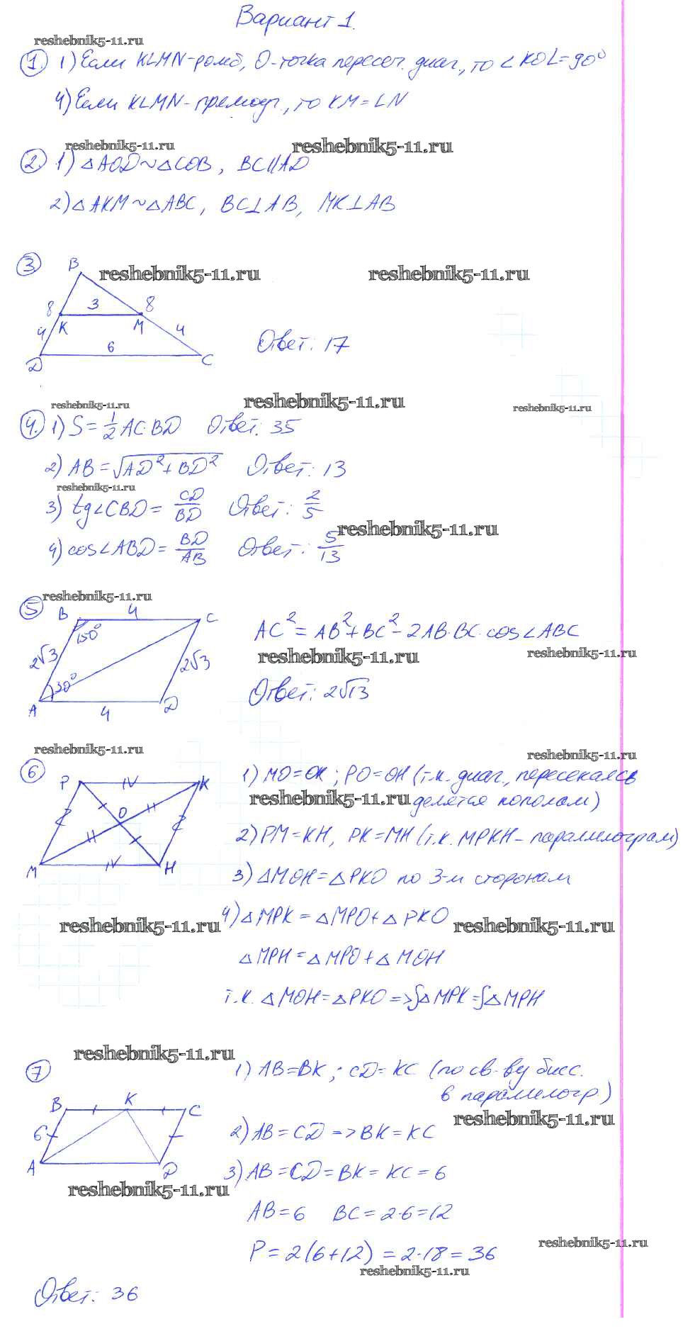 Готовая домашняя работа с ответами по Геометрии за 9 класс Мельникова Контрольные работы УМК Экзамен 2016 ФГОС - КР-7. Варианты 2