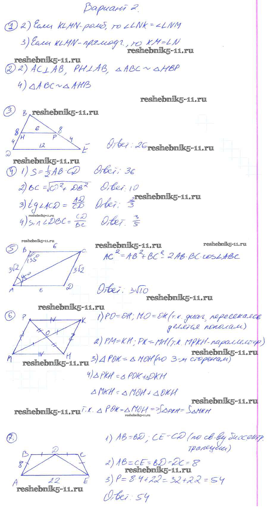 Готовая домашняя работа с ответами по Геометрии за 9 класс Мельникова Контрольные работы УМК Экзамен 2016 ФГОС - КР-7. Варианты 3