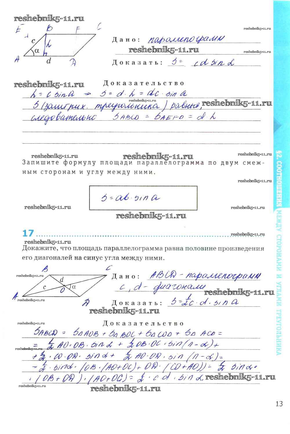 Готовая домашняя работа с ответами по Геометрии за 9 класс Мищенко Рабочая тетрадь УМК Экзамен 2016 ФГОС - Страницы 13