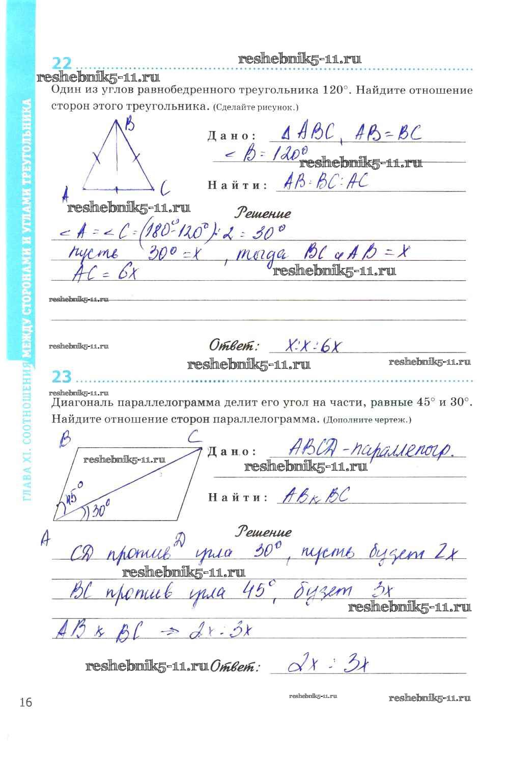 Готовая домашняя работа с ответами по Геометрии за 9 класс Мищенко Рабочая тетрадь УМК Экзамен 2016 ФГОС - Страницы 16