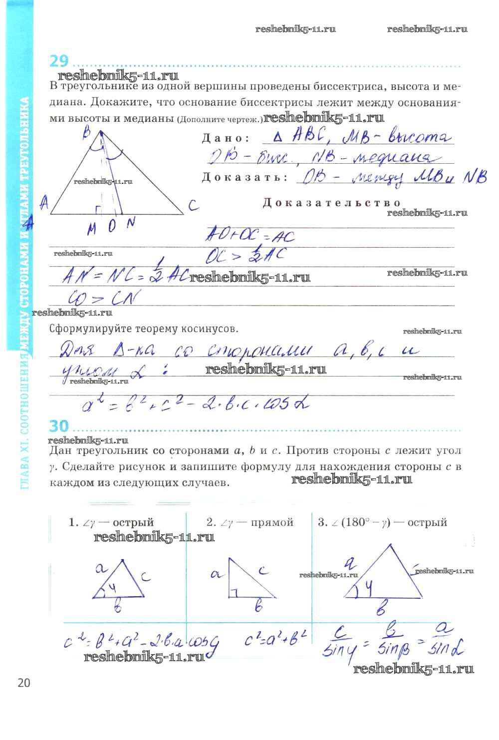 Готовая домашняя работа с ответами по Геометрии за 9 класс Мищенко Рабочая тетрадь УМК Экзамен 2016 ФГОС - Страницы 20