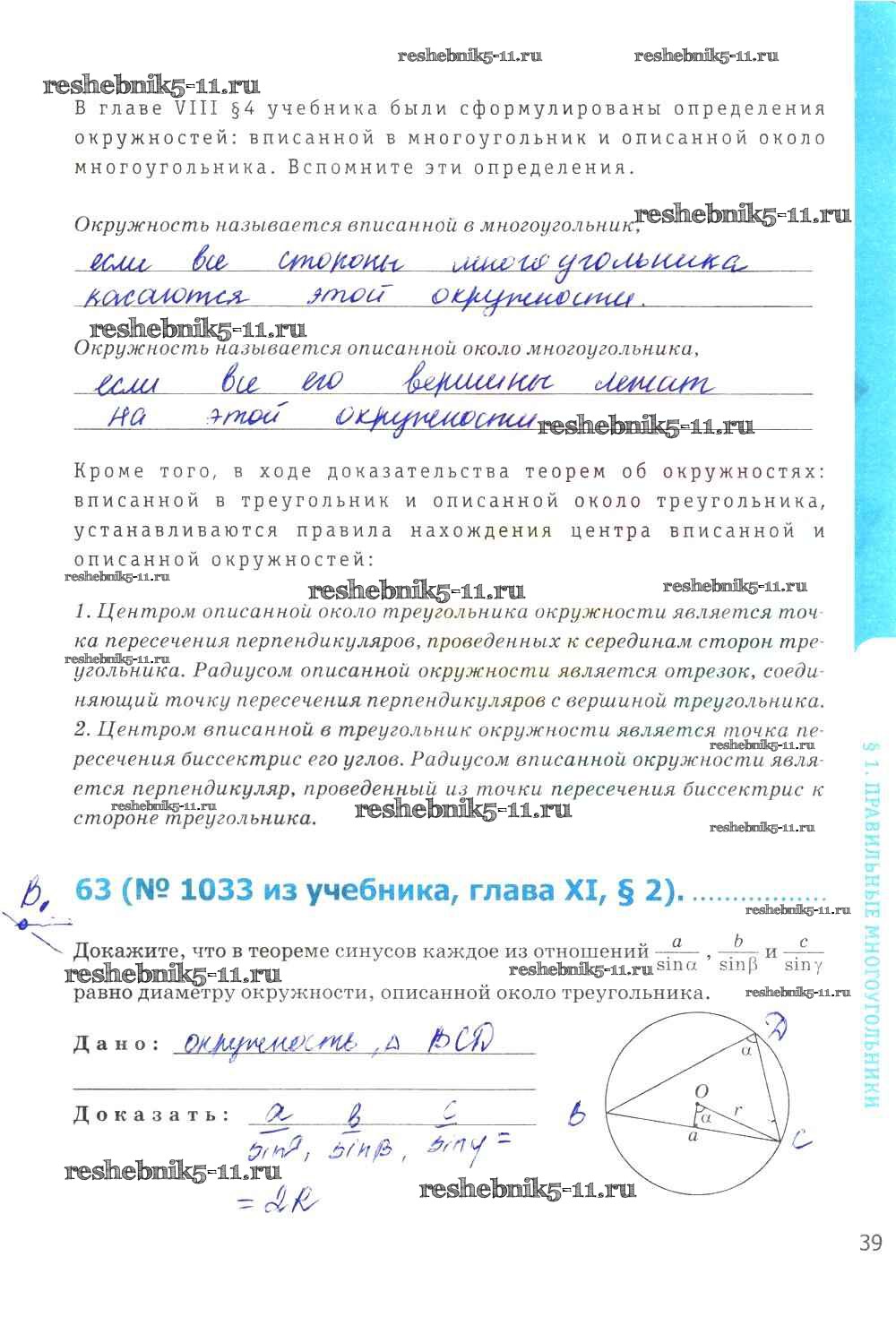 Готовая домашняя работа с ответами по Геометрии за 9 класс Мищенко Рабочая тетрадь УМК Экзамен 2016 ФГОС - Страницы 39