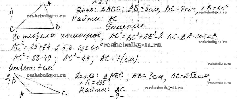 Готовая домашняя работа с ответами по Геометрии за 9 класс Мерзляк, Поляков Учебник Углубленный уровень Вентана-граф 2019 ФГОС - §2 2.1