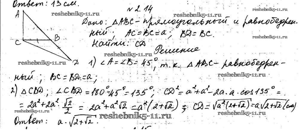 Готовая домашняя работа с ответами по Геометрии за 9 класс Мерзляк, Поляков Учебник Углубленный уровень Вентана-граф 2019 ФГОС - §2 2.14
