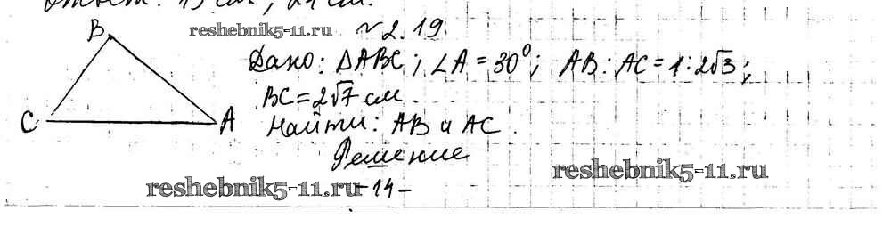 Готовая домашняя работа с ответами по Геометрии за 9 класс Мерзляк, Поляков Учебник Углубленный уровень Вентана-граф 2019 ФГОС - §2 2.19
