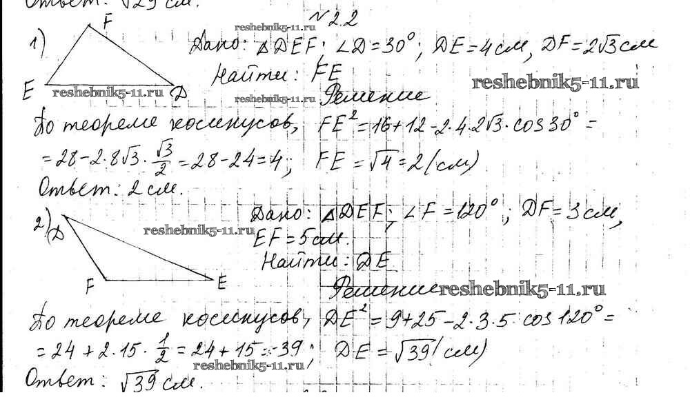 Готовая домашняя работа с ответами по Геометрии за 9 класс Мерзляк, Поляков Учебник Углубленный уровень Вентана-граф 2019 ФГОС - §2 2.2