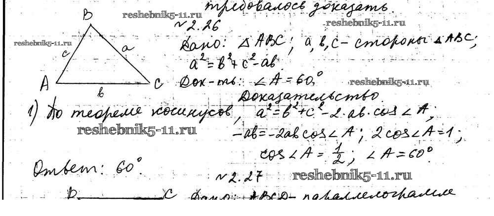 Готовая домашняя работа с ответами по Геометрии за 9 класс Мерзляк, Поляков Учебник Углубленный уровень Вентана-граф 2019 ФГОС - §2 2.26