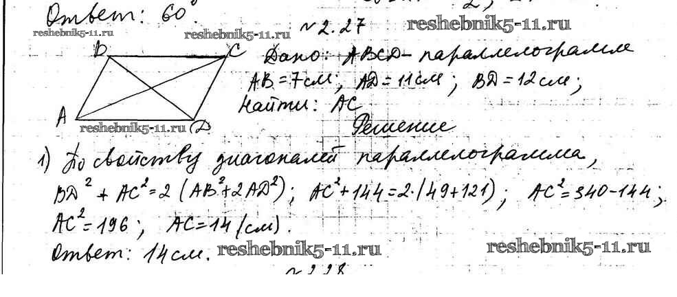 Готовая домашняя работа с ответами по Геометрии за 9 класс Мерзляк, Поляков Учебник Углубленный уровень Вентана-граф 2019 ФГОС - §2 2.27