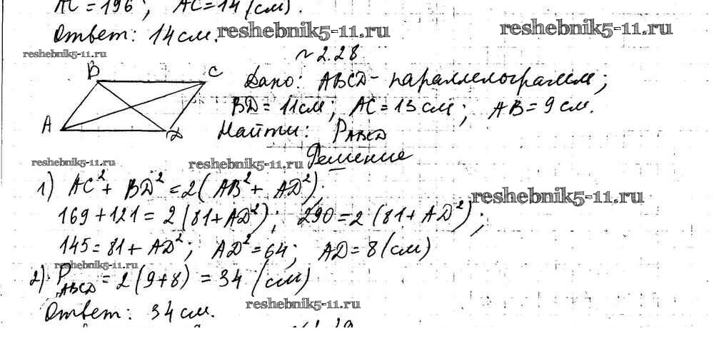 Готовая домашняя работа с ответами по Геометрии за 9 класс Мерзляк, Поляков Учебник Углубленный уровень Вентана-граф 2019 ФГОС - §2 2.28