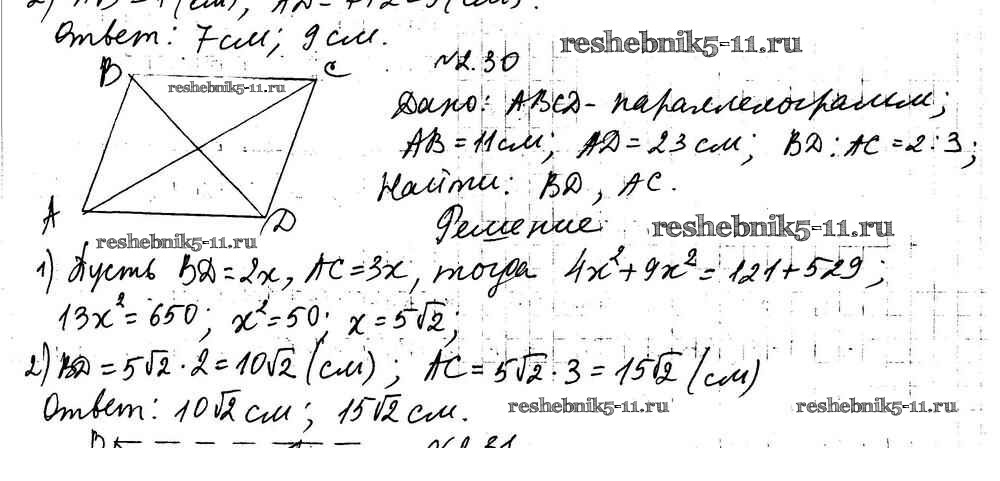 Готовая домашняя работа с ответами по Геометрии за 9 класс Мерзляк, Поляков Учебник Углубленный уровень Вентана-граф 2019 ФГОС - §2 2.30