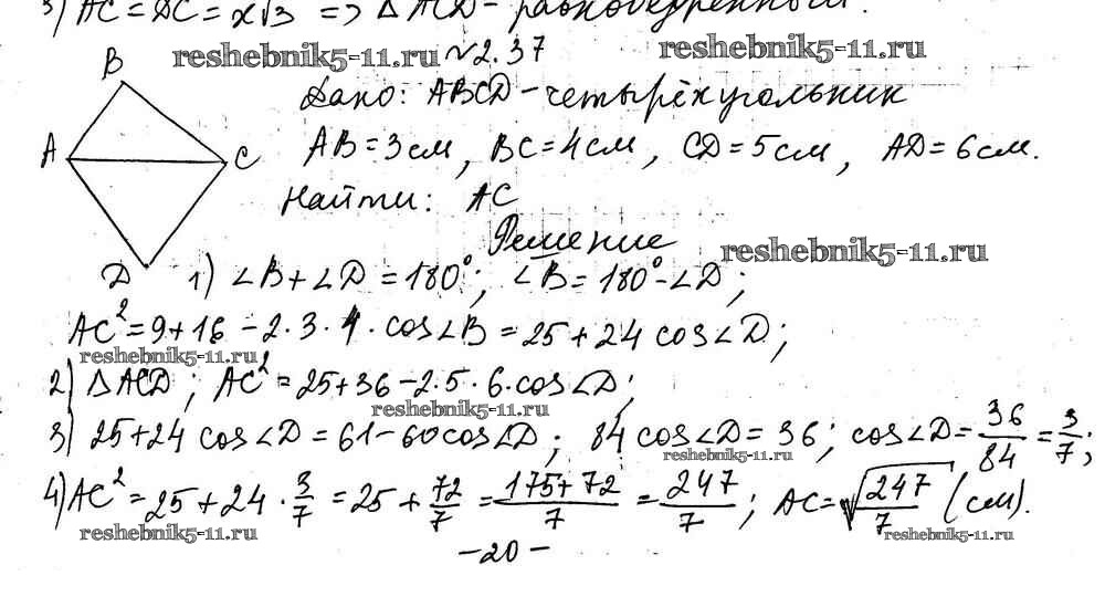 Готовая домашняя работа с ответами по Геометрии за 9 класс Мерзляк, Поляков Учебник Углубленный уровень Вентана-граф 2019 ФГОС - §2 2.37