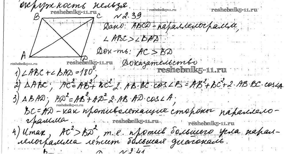 Готовая домашняя работа с ответами по Геометрии за 9 класс Мерзляк, Поляков Учебник Углубленный уровень Вентана-граф 2019 ФГОС - §2 2.39