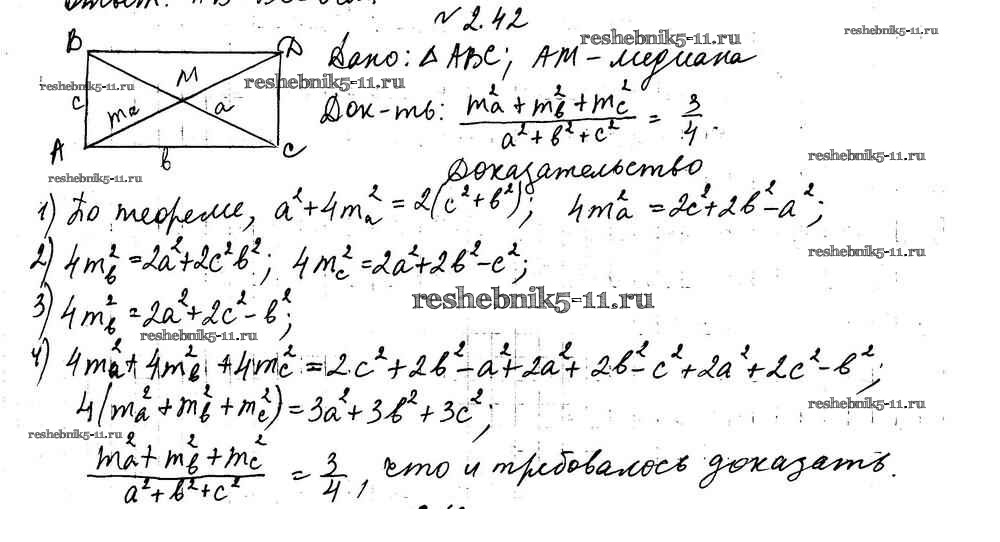Готовая домашняя работа с ответами по Геометрии за 9 класс Мерзляк, Поляков Учебник Углубленный уровень Вентана-граф 2019 ФГОС - §2 2.42