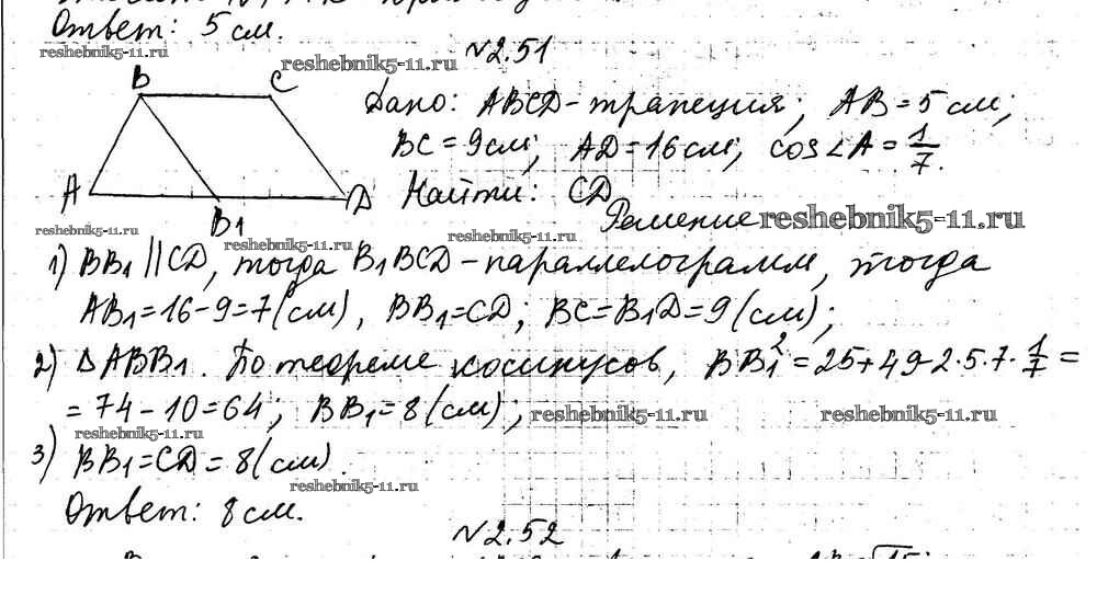 Готовая домашняя работа с ответами по Геометрии за 9 класс Мерзляк, Поляков Учебник Углубленный уровень Вентана-граф 2019 ФГОС - §2 2.51
